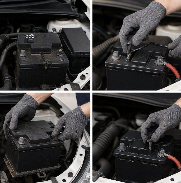 Eski aküyü dikkatlice kaldırın (ağırdır, ortalama 10–20 kg olabilir).